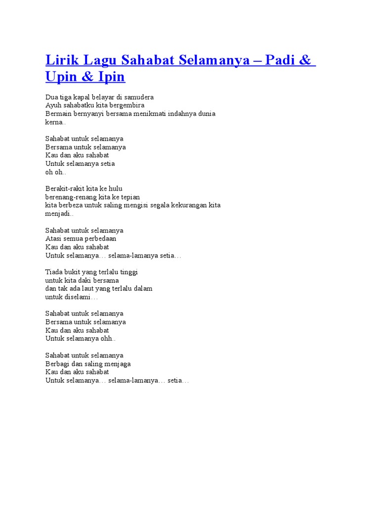 Lirik Upin ipin Sahabat Selamanya -Padi + Video - Lirik lagu muzik anda