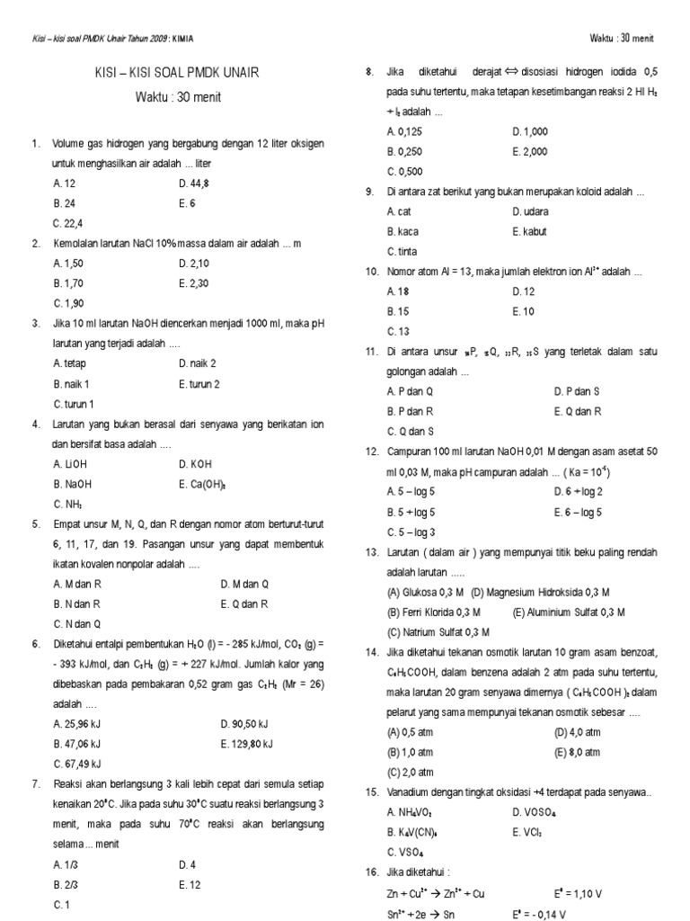Download Soal Dan Pembahasan UM UNAIR Saintek (TERBARU) - Soalskul