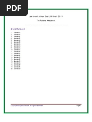 Jawaban Latihan Soal UM Unair 2015 Tes Potensi Microsoft Word - latihan-um- unair-tpa-bahas Author user Created Date 10/17/2014 7:19:17 AM