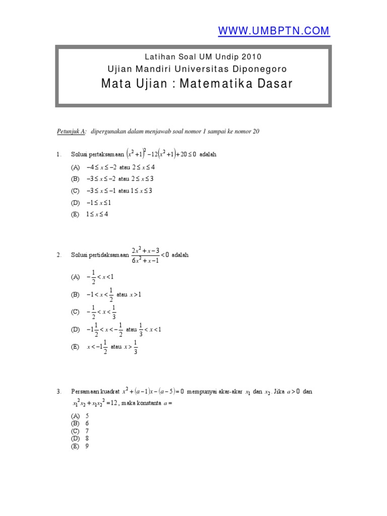 Download Soal UM UNDIP S1 (Ujian Mandiri Universitas Diponegoro …