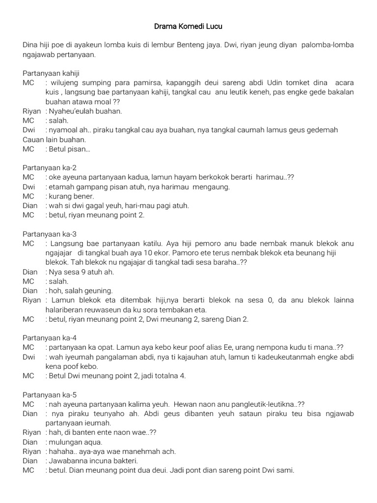 Contoh Naskah Drama Pendek Bahasa Sunda 4 Orang Pemain Lucu - PDF Free Download
