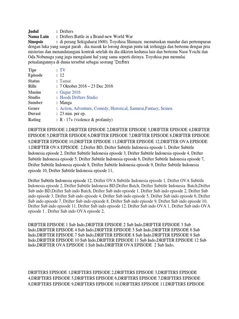 Jual Drifters (2016) Complete Subtitle Indonesia PC / DVD Player …