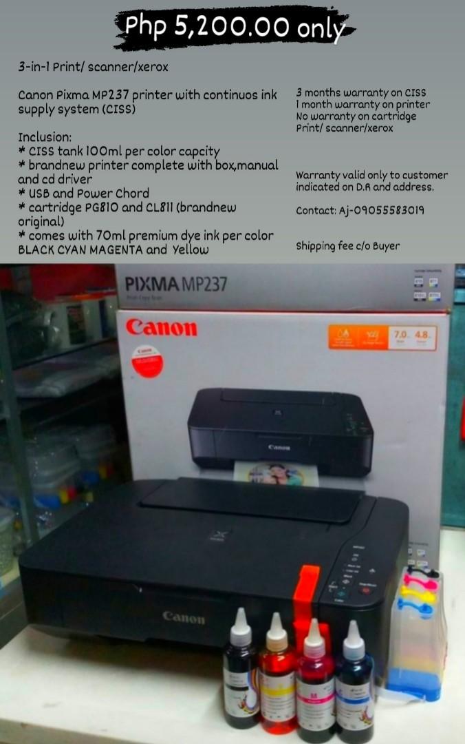3-in-1 Canon Pixma MP237 with Ciss Ready to Use, Electronics …