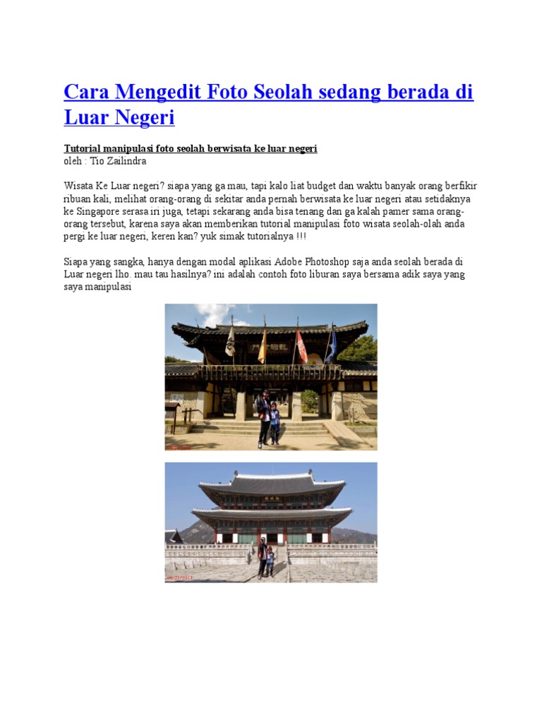Tio Zailindra update: Cara Mengedit Foto Seolah sedang berada di …