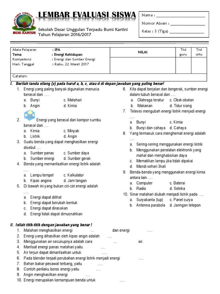 Kumpulan Soal USBN SD IPA 2019 tentang Energi, Energi Alternatif …