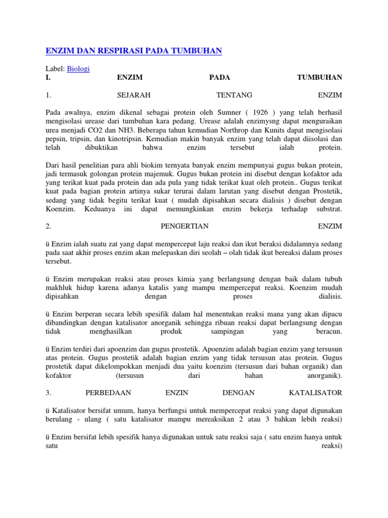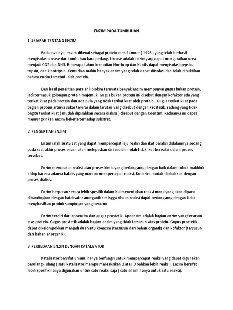 Makalah Enzim Pada Tumbuhan - Contoh Makalah