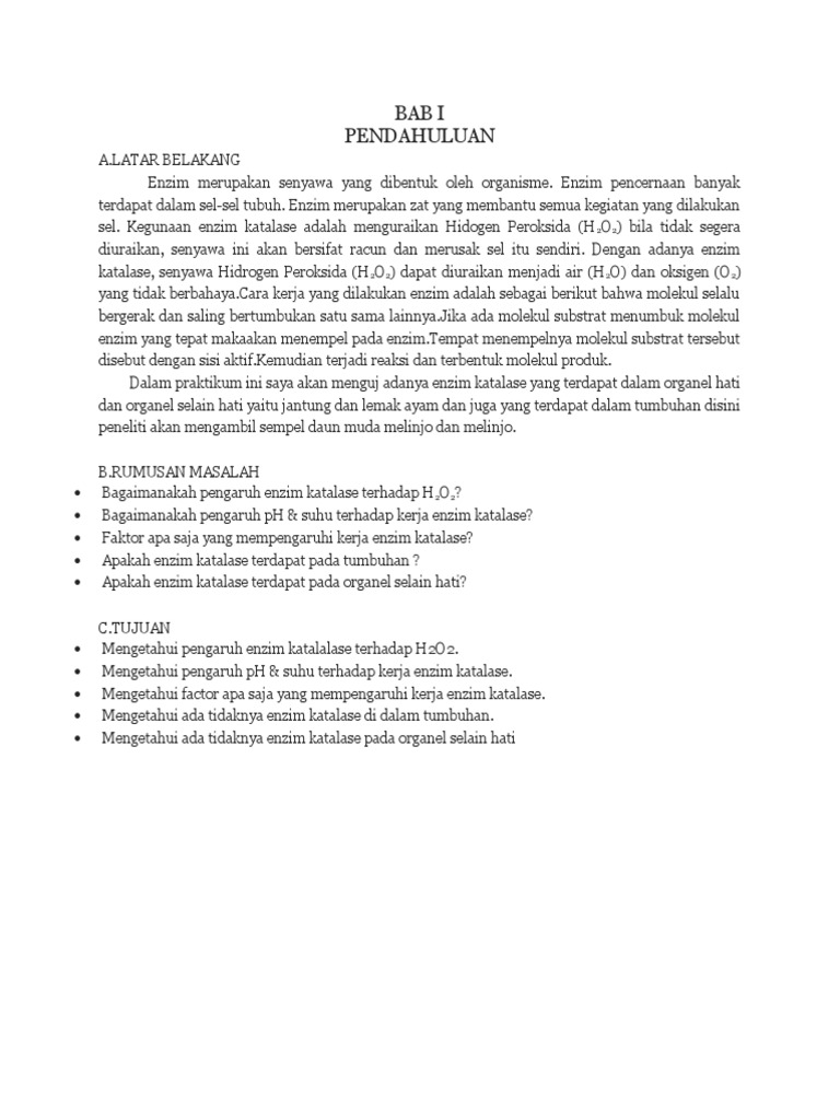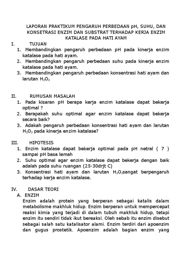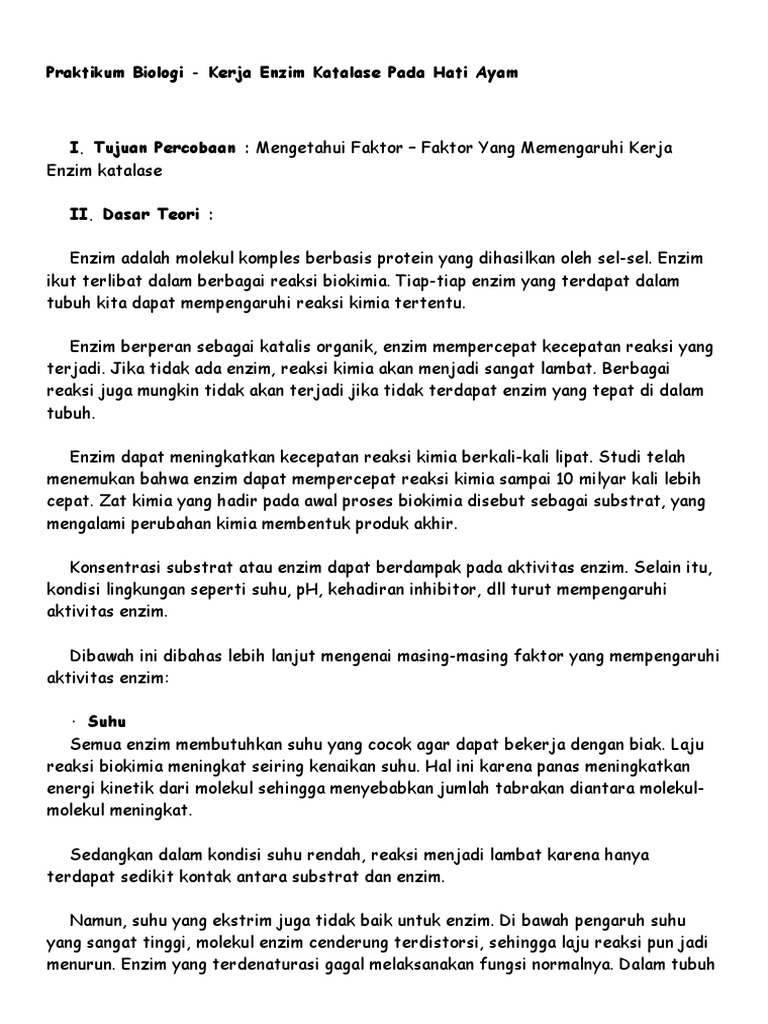 DOC) Praktikum Biologi -Kerja Enzim Katalase Pada Hati Ayam | Isti Mulfiyana - Academia.edu