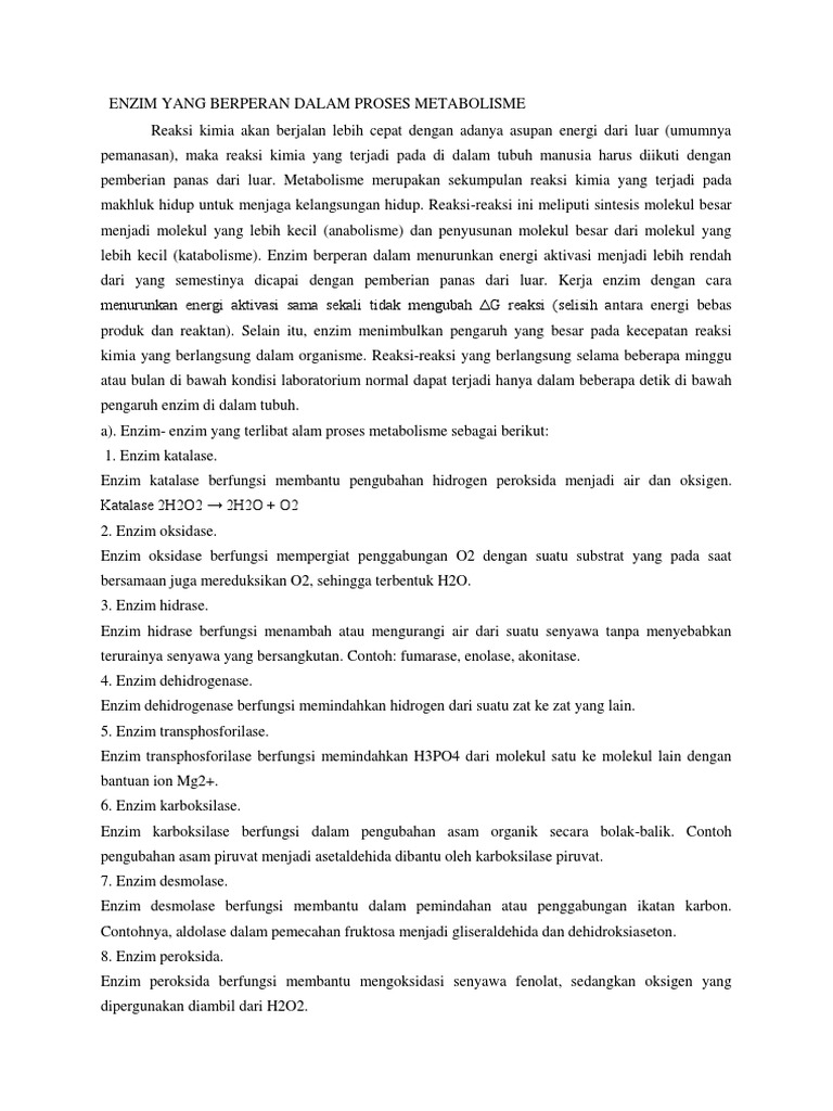 Enzim Yang Berperan Dalam Proses Metabolisme
