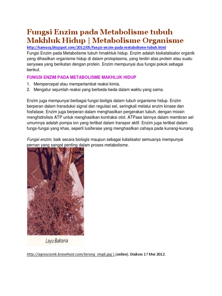 Fungsi Enzim Pada Metabolisme Tubuh Makhluk Hidup