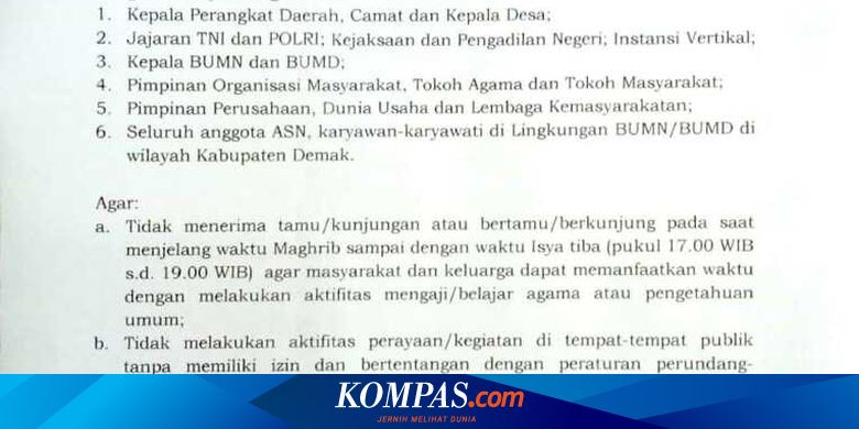 Fakta Surat Edaran Larangan Bertamu Jelang Magrib di Demak, Upaya …