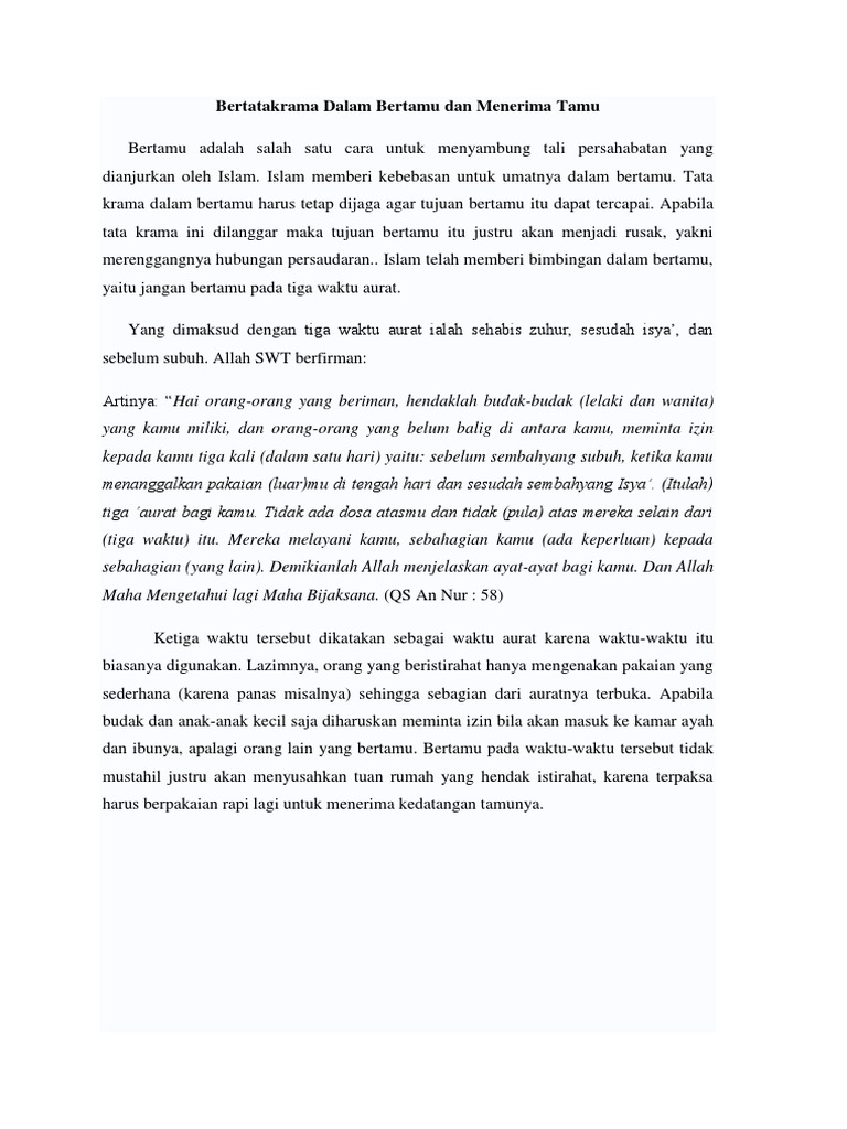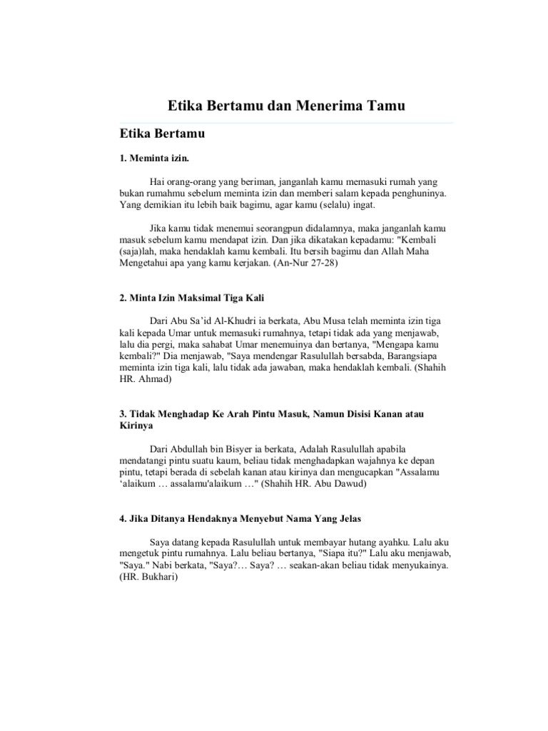 Adab Bertamu dan Menerima Tamu berdasarkan alquran dan hadits …