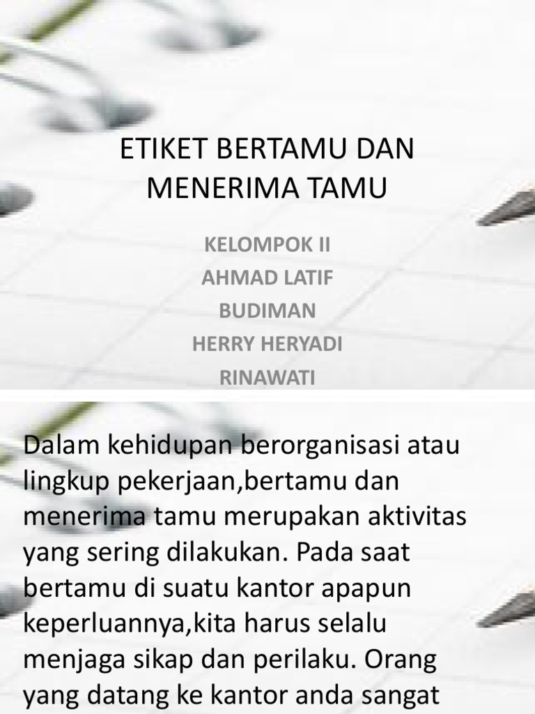Etika Bertamu Dan Menerima Tamu Di Kantor - [PPTX Powerpoint]