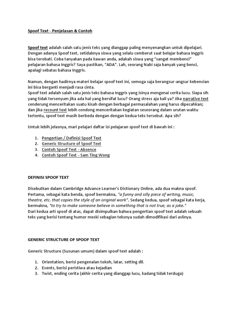 Pengertian Generic Structure Spoof Text Beserta Contoh Terlengkap …