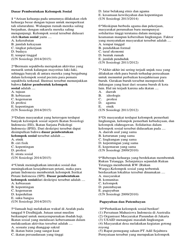 Soal-Soal Sosiologi Kelas XI. Kompetensi Kelompok Sosial