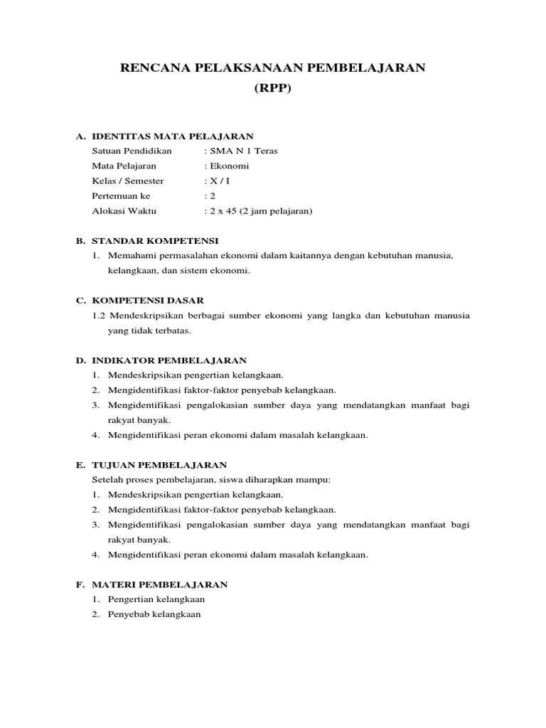 Kelangkaan ekonomi (Kelas X - Semester 1)
