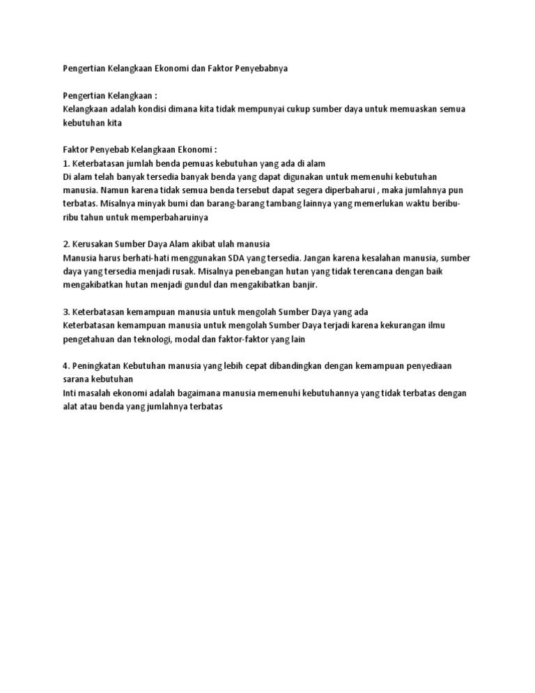 Pengertian Kelangkaan Ekonomi Dan Faktor Penyebabnya