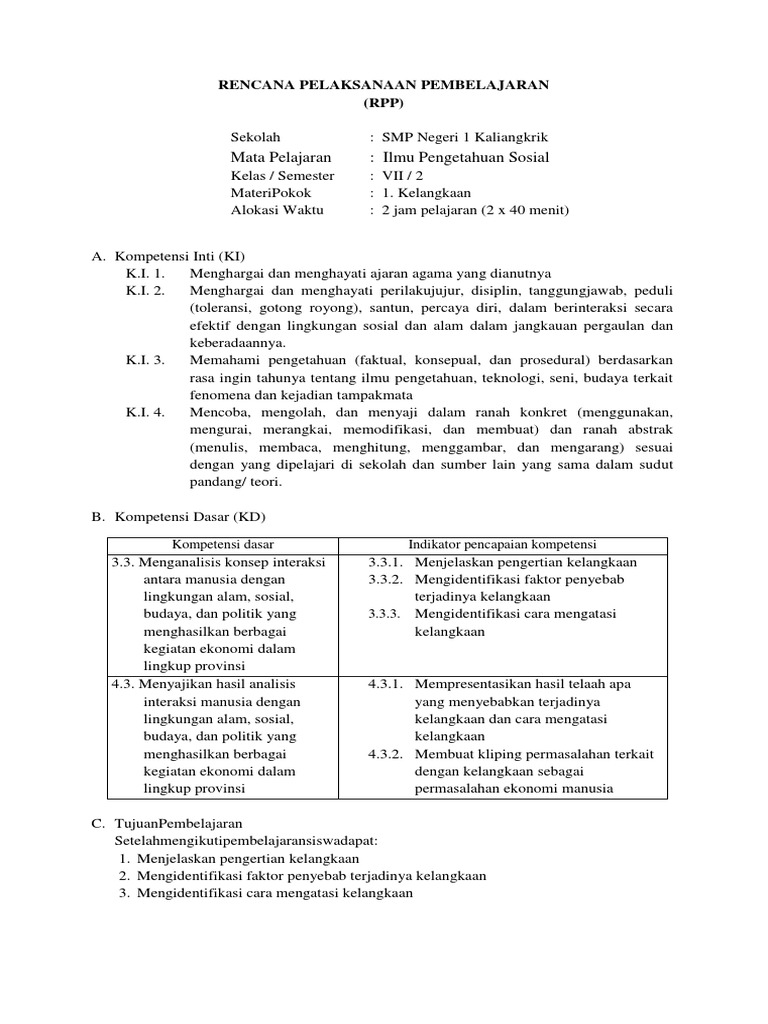 Mata Pelajaran: Ilmu Pengetahuan Sosial: Rencana Pelaksanaan Pembelajaran (RPP)