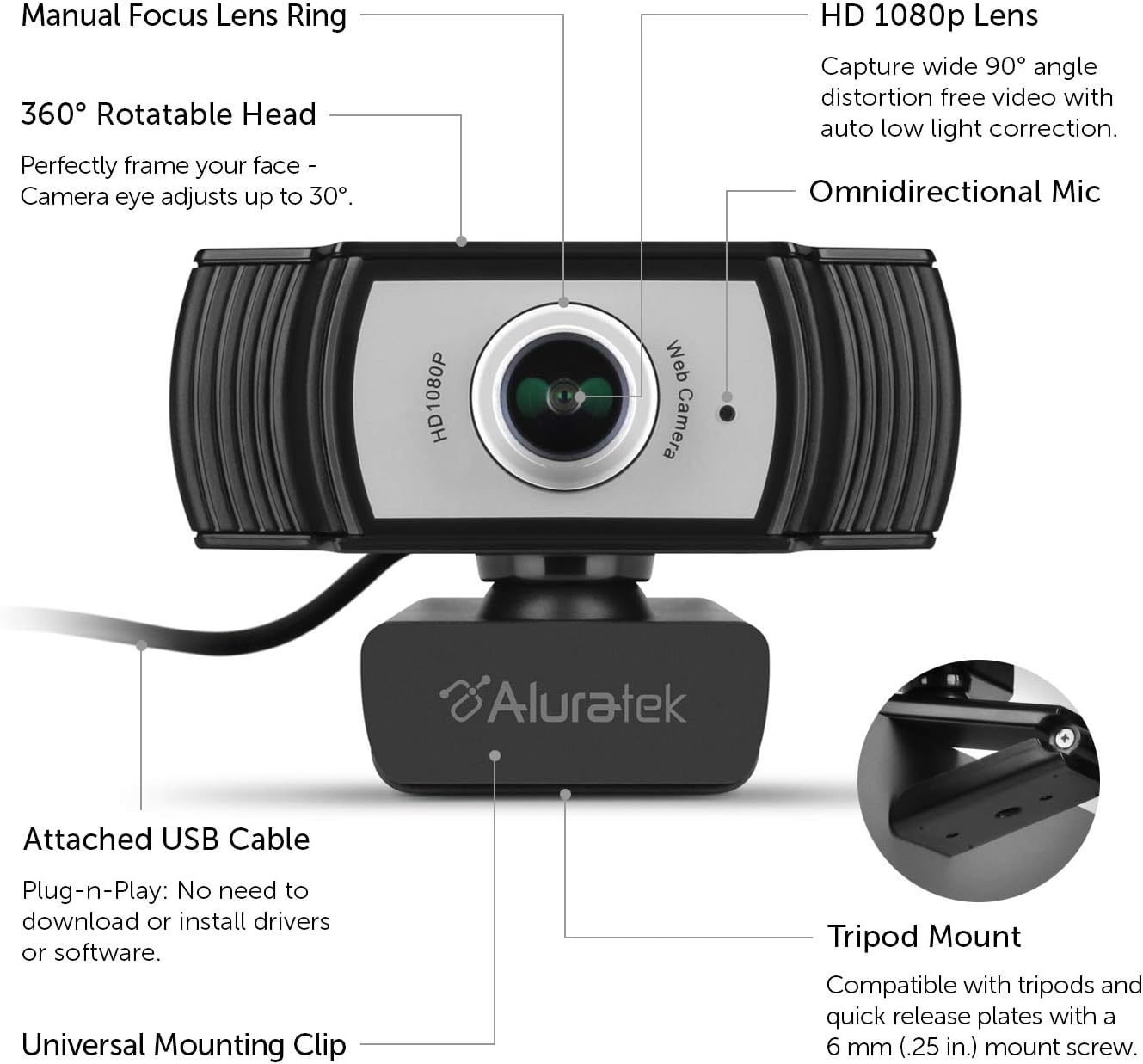 Amazon.com: Aluratek HD 1080P Video Webcam for PC, MAC, Desktop …