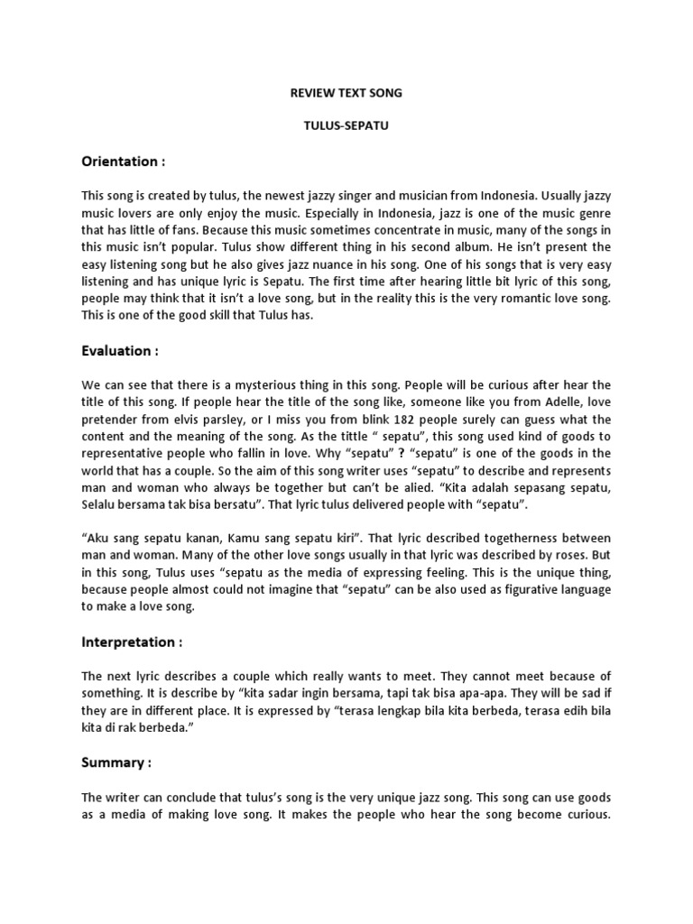 Orientation:: Review Text Song Tulus-Sepatu | Music Media …