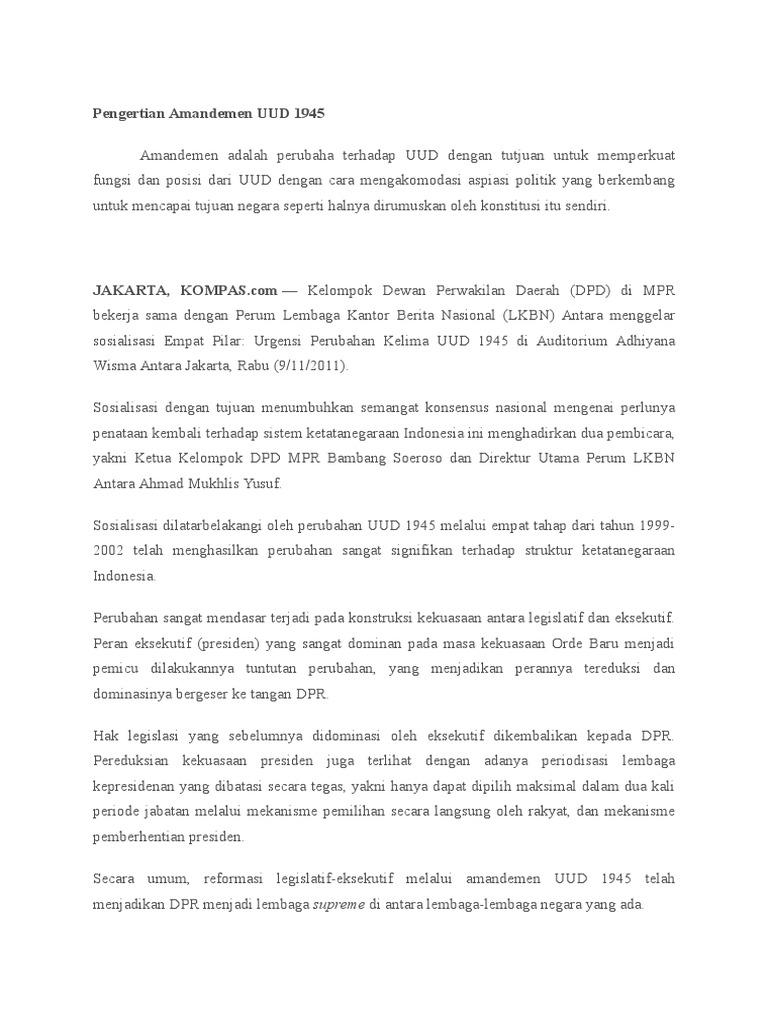 Perubahan Undang-Undang Dasar 1945 Halaman all - Kompas.com
