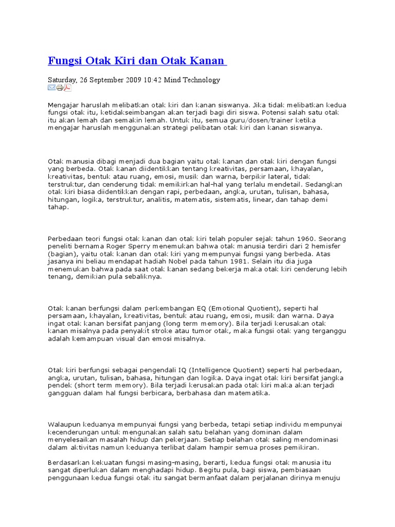 Fungsi Otak Kanan Otak Kiri