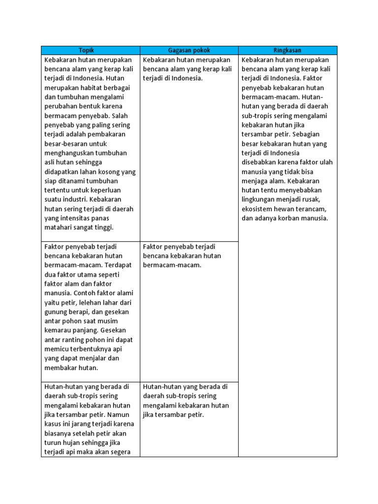 Topik Gagasan pokok Ringkasan