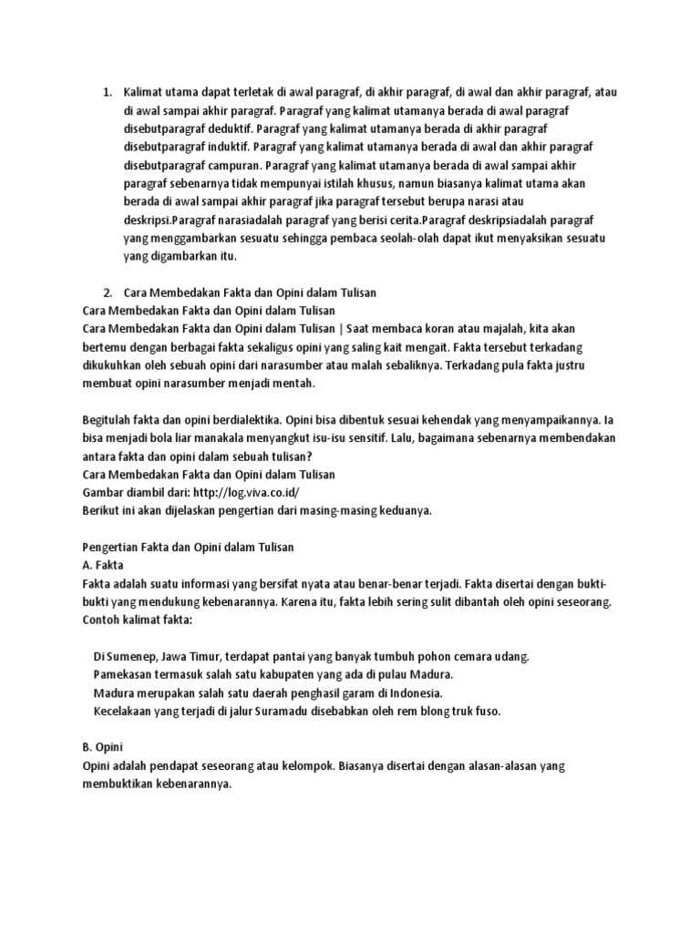 Kalimat Utama Dapat Terletak Di Awal Paragraf
