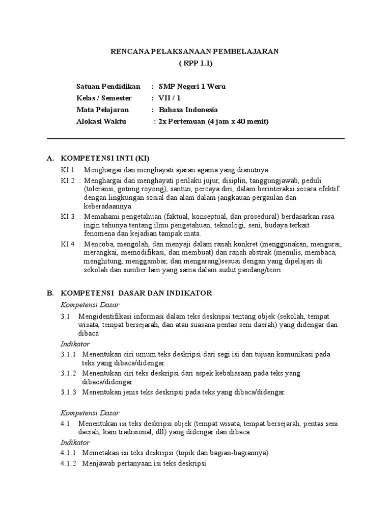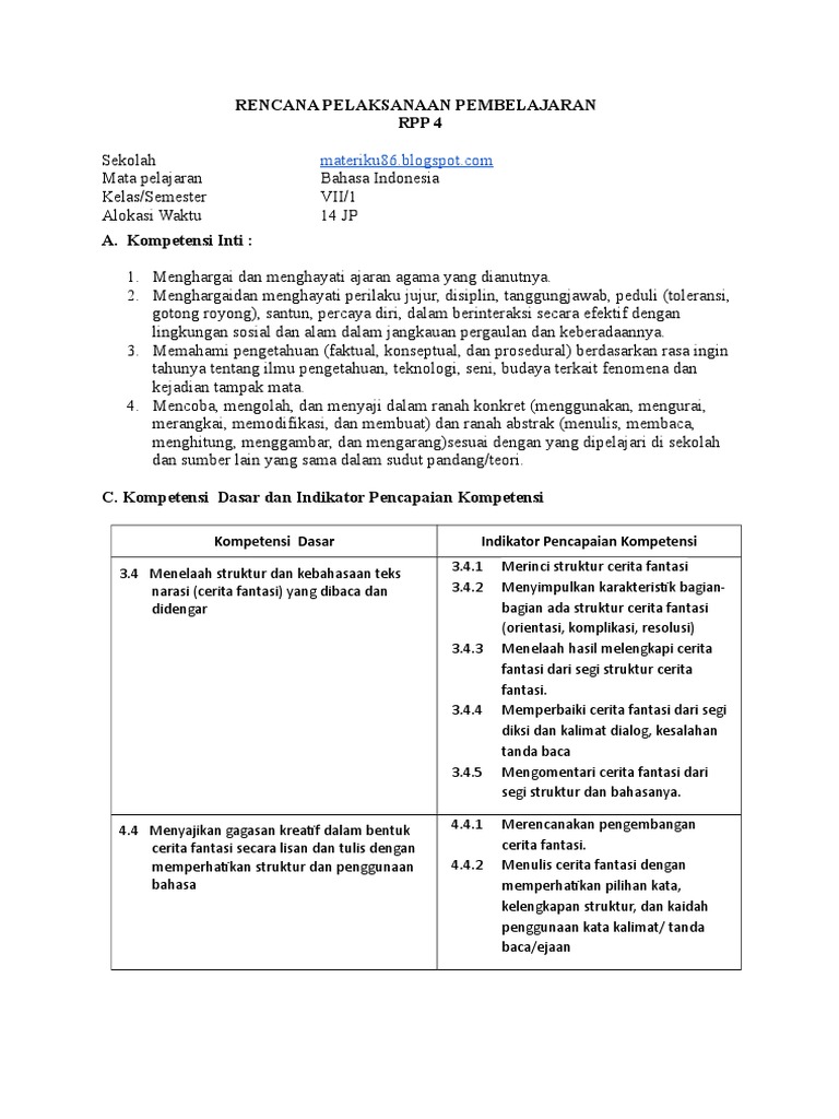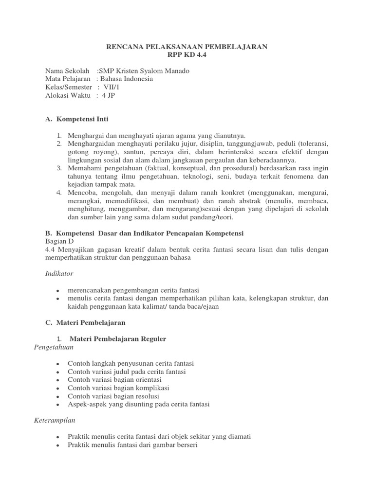 CONTOH RPP BAHASA INDONESIA SMP KELAS 7 KD 4.4 REVISI 2017 …