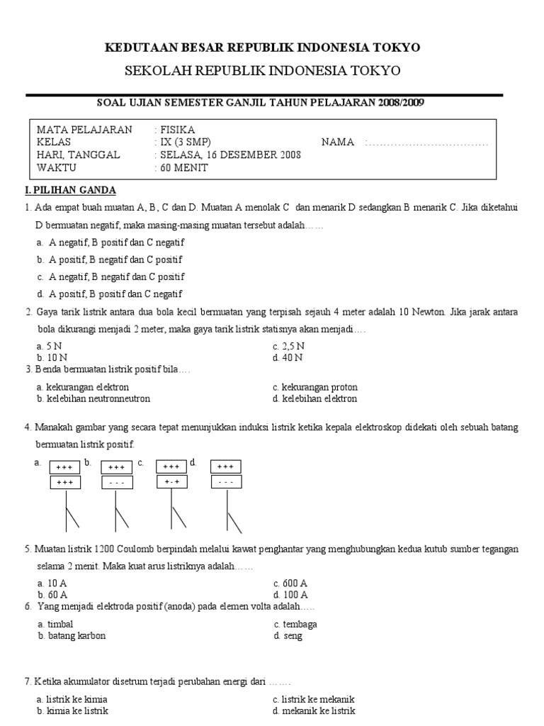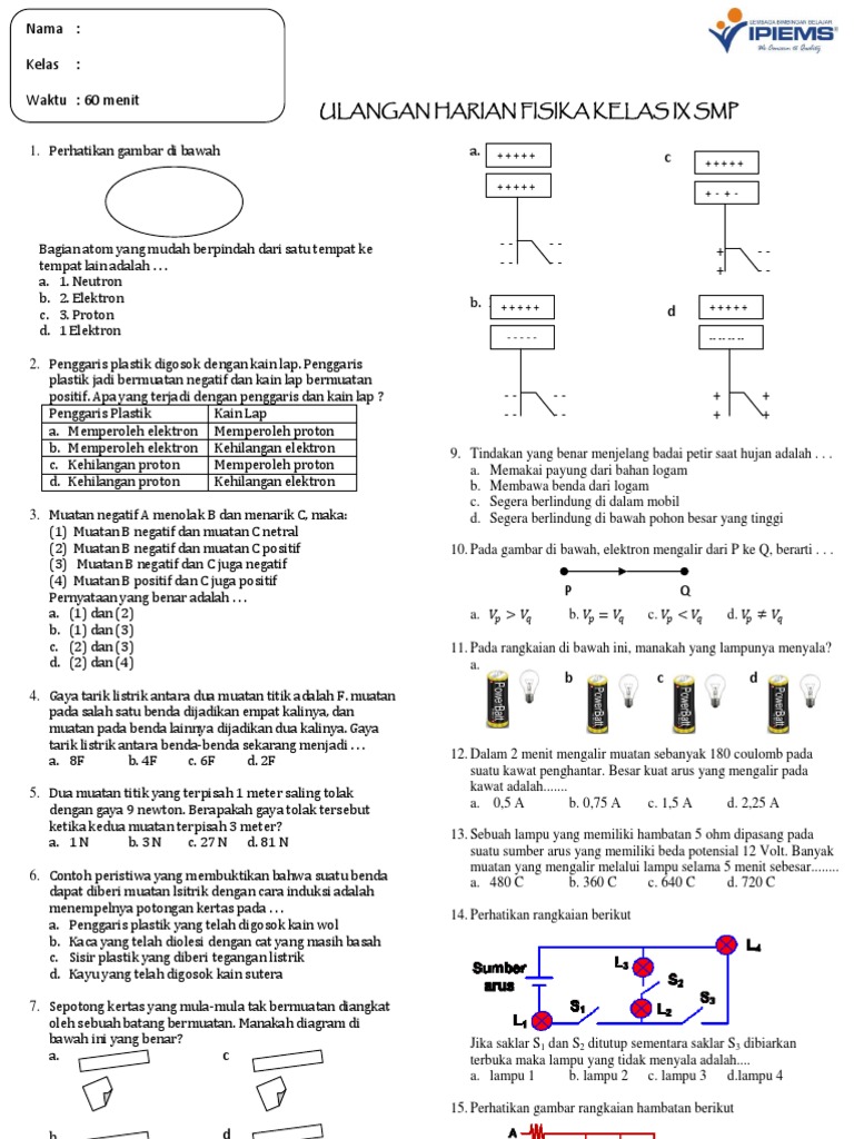 ulangan harian listrik statis smp kelas ix