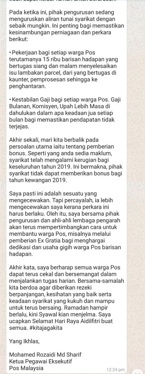 Twt_Bajet on Twitter: “Penerangan CEO Pos Malaysia mengenai isu kenapa tiada bonus tahun ini Gambar pertama agak menyakitkan mata. Proceed ke gambar kedua dan seterusnya.… https://t.co/7xV3tcAczv”