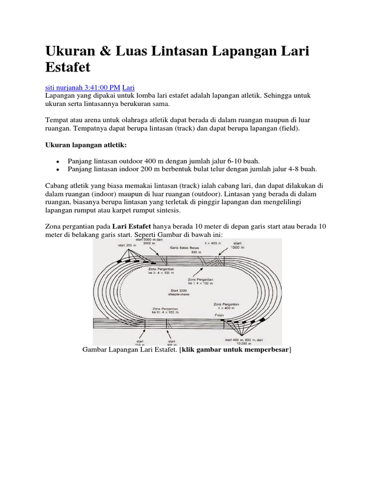 Ukuran Dan Luas Lintas Lapangan Estafet
