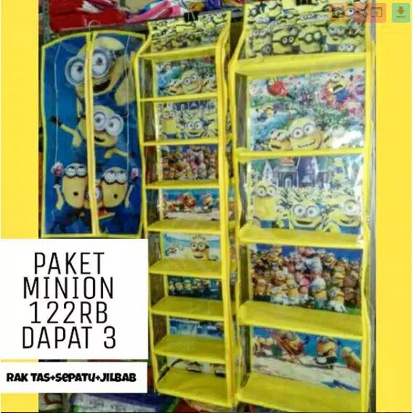 3 In 1 Rak Organizer Gantung Karakter Minion Rak Tas/Rak HELM + Rak SEPATU + Rak JILBAB IDZN | Shopee Indonesia