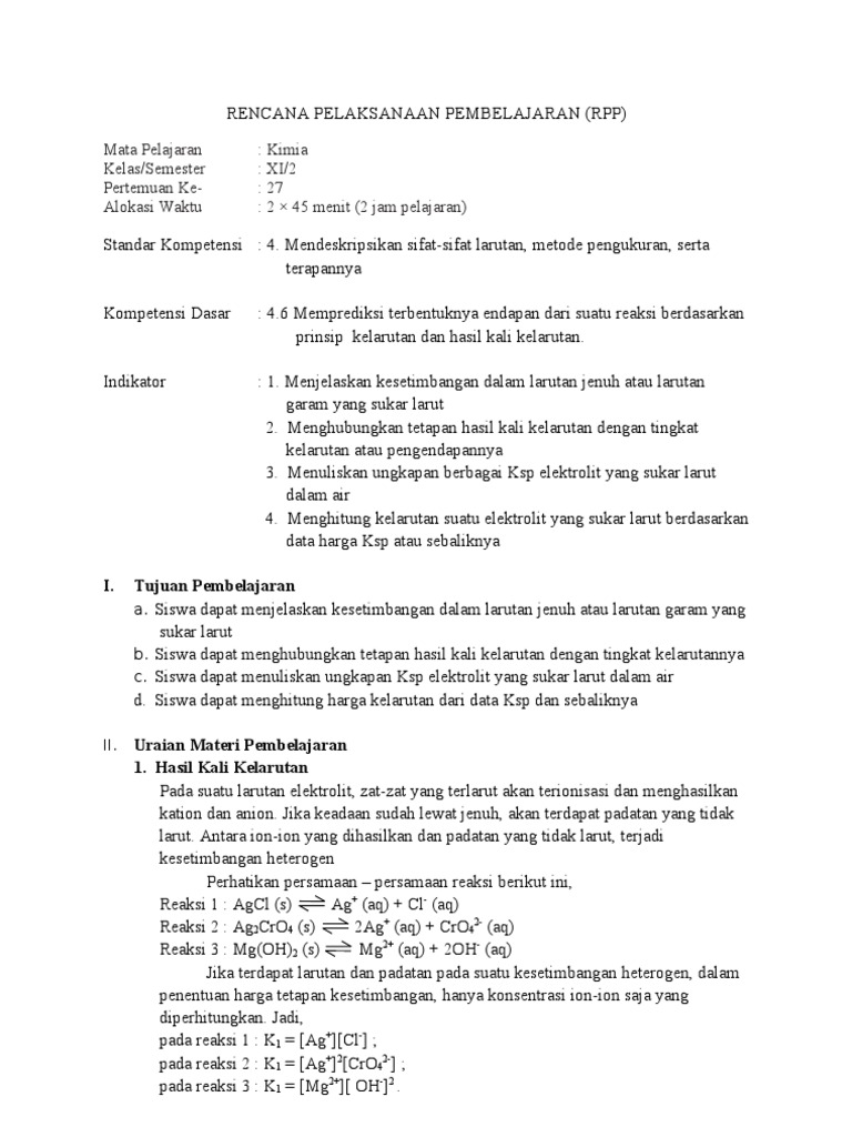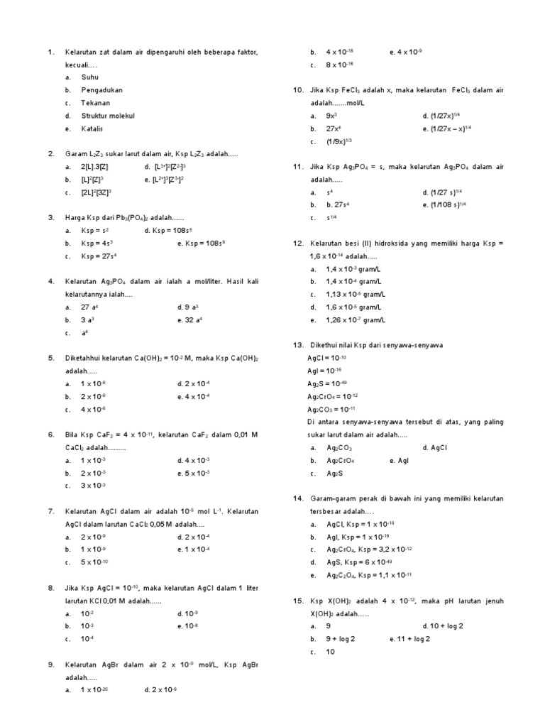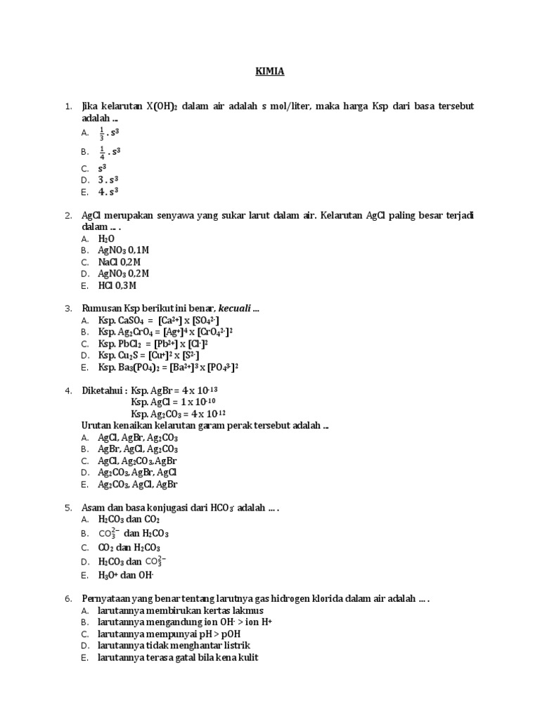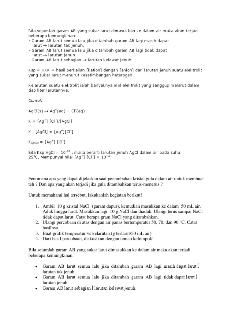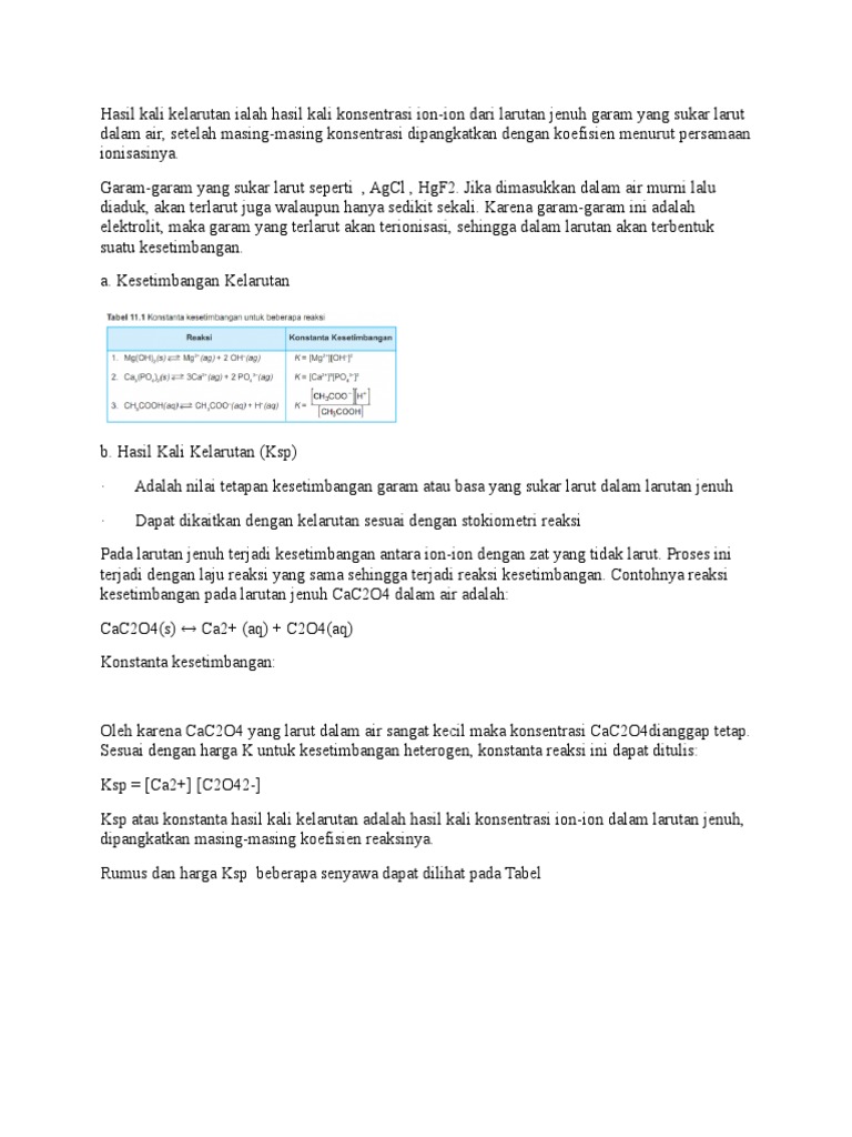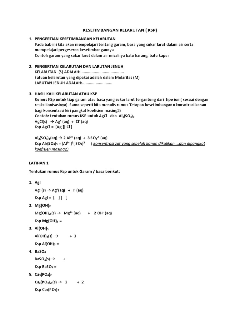 DOC) RINGKASAN MATERI: HASIL KALI KELARUTAN KSP | Wildan Archibald …