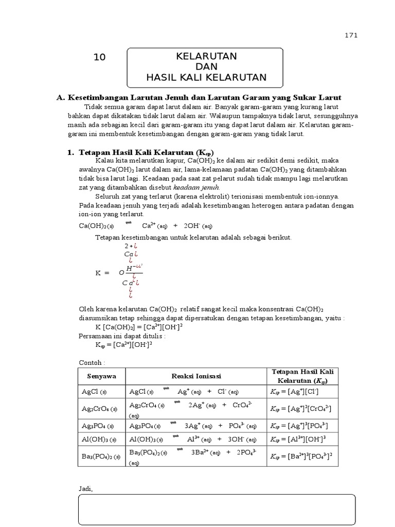 10) KELARUTAN DAN HASIL KALI KELARUTAN - 171 KELARUTAN DAN HASIL …