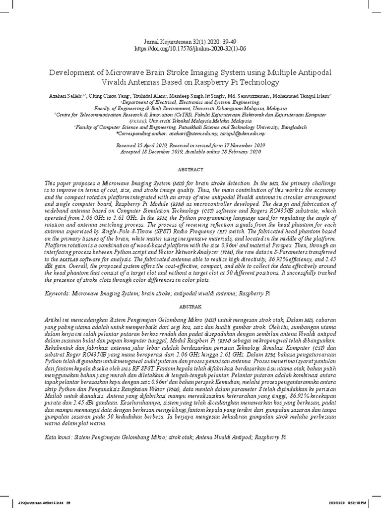 PDF) Development of Microwave Brain Stroke Imaging System using …
