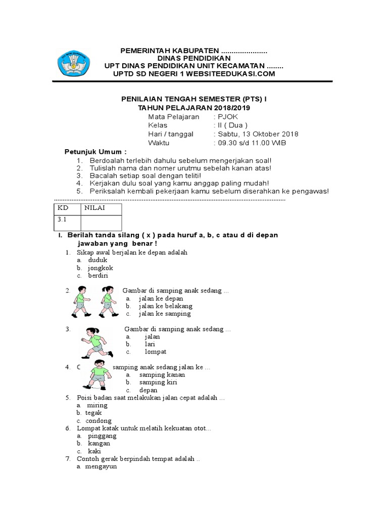 soal uts 2 PJOK kelas 3 KTSP.docx - KELOMPOK KERJA KEPALA SATUAN PENDIDIKAN DASAR(K3SATDIKDAS ULANGAN PENILAIAN TENGAH SEMESTER(UTS/PTS II TAHUN | Course Hero