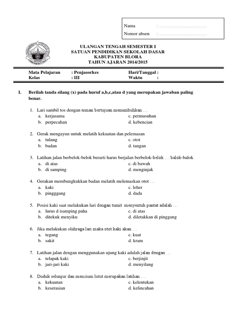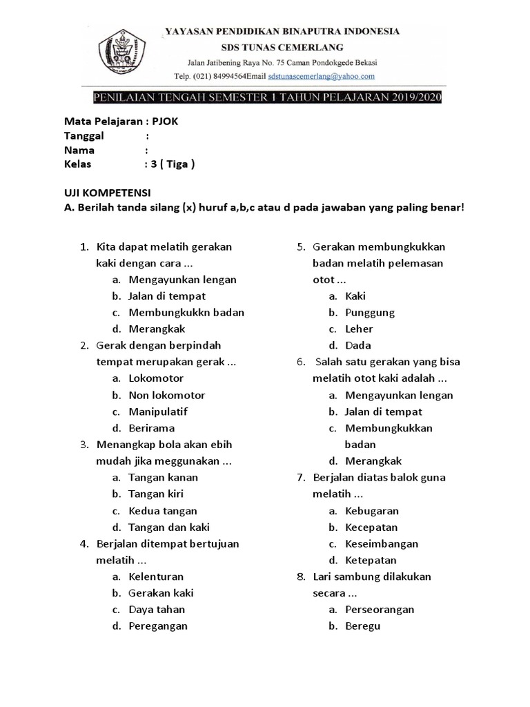 Soal Uts Penjasorkes Kelas III