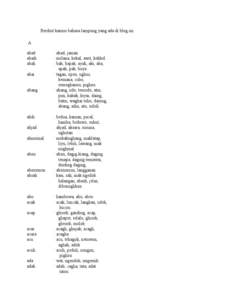 Berikut Kamus Bahasa Lampung Yang Ada Di Blog Ini
