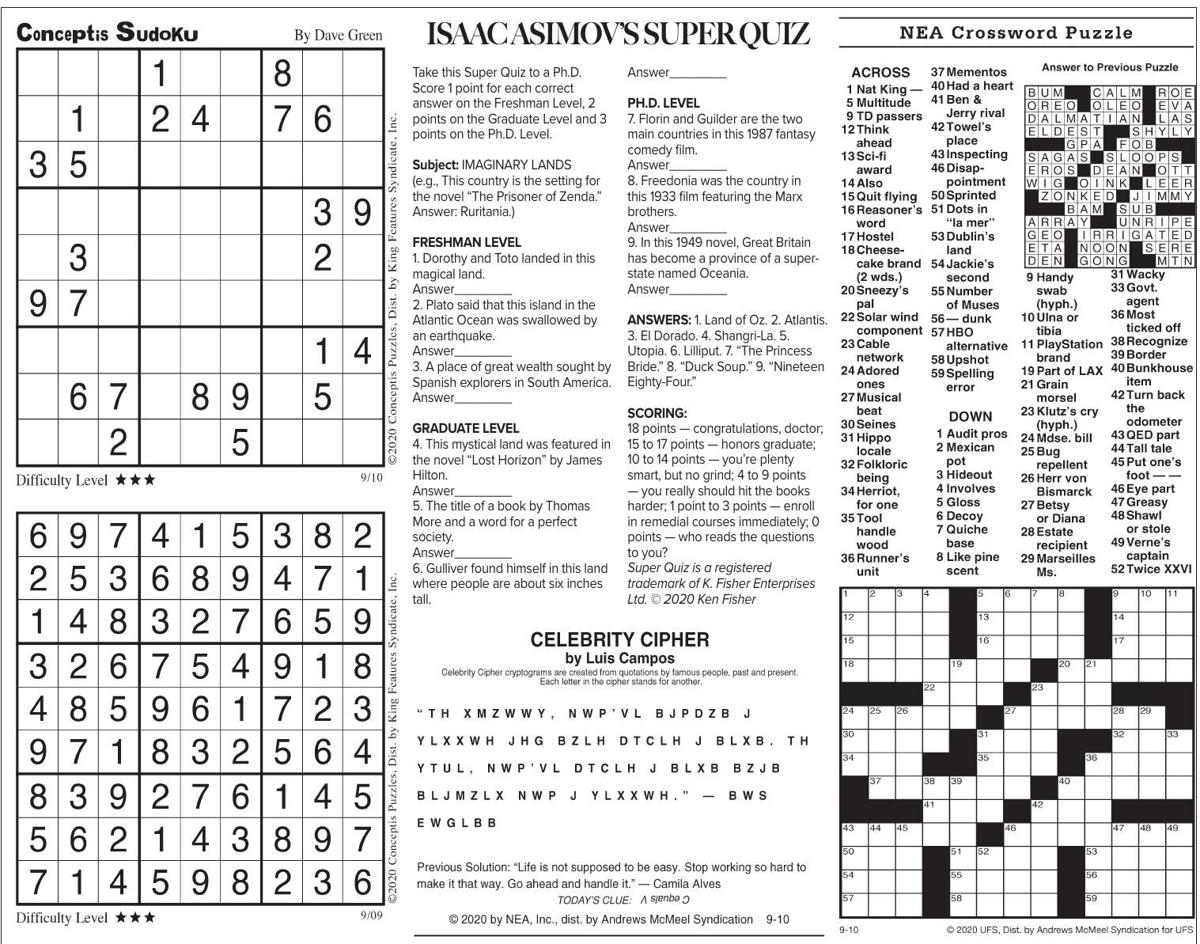 Thursday, Sept. 10, 2020 Comics and Puzzles | Daily Comics …