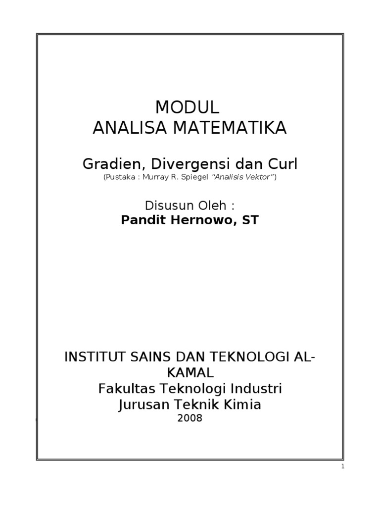 Modul Analisa Matematika: Gradien, Divergensi dan Curl