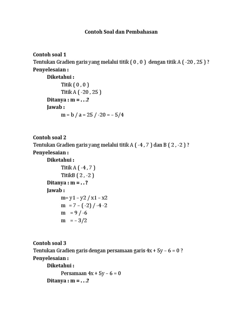Contoh Soal Dan Jawaban Gradien