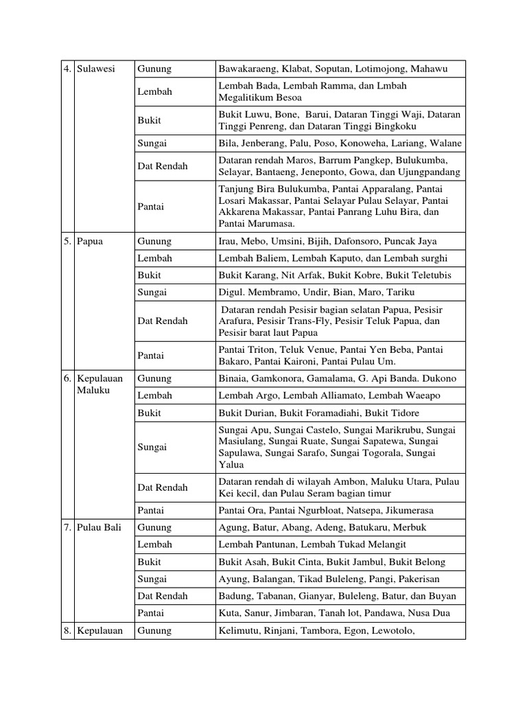 9. Gunungb. Lembahc. BukultSulawesid. Sungaie. Dataran rendah1 …
