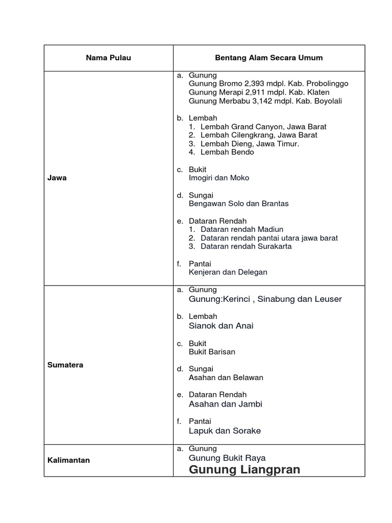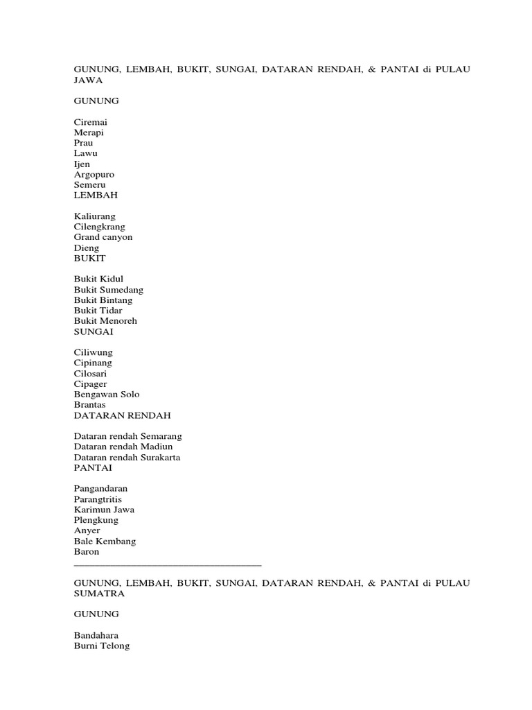 nama gunung,lembah,bukit,sungai,dataran rendah,dan pantai di pulau …