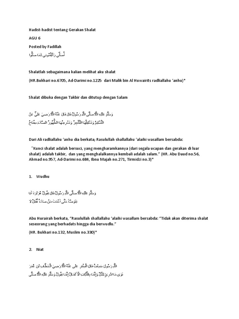 kesimpulan hadist -hadist gerakan sholat - Brainly.co.id
