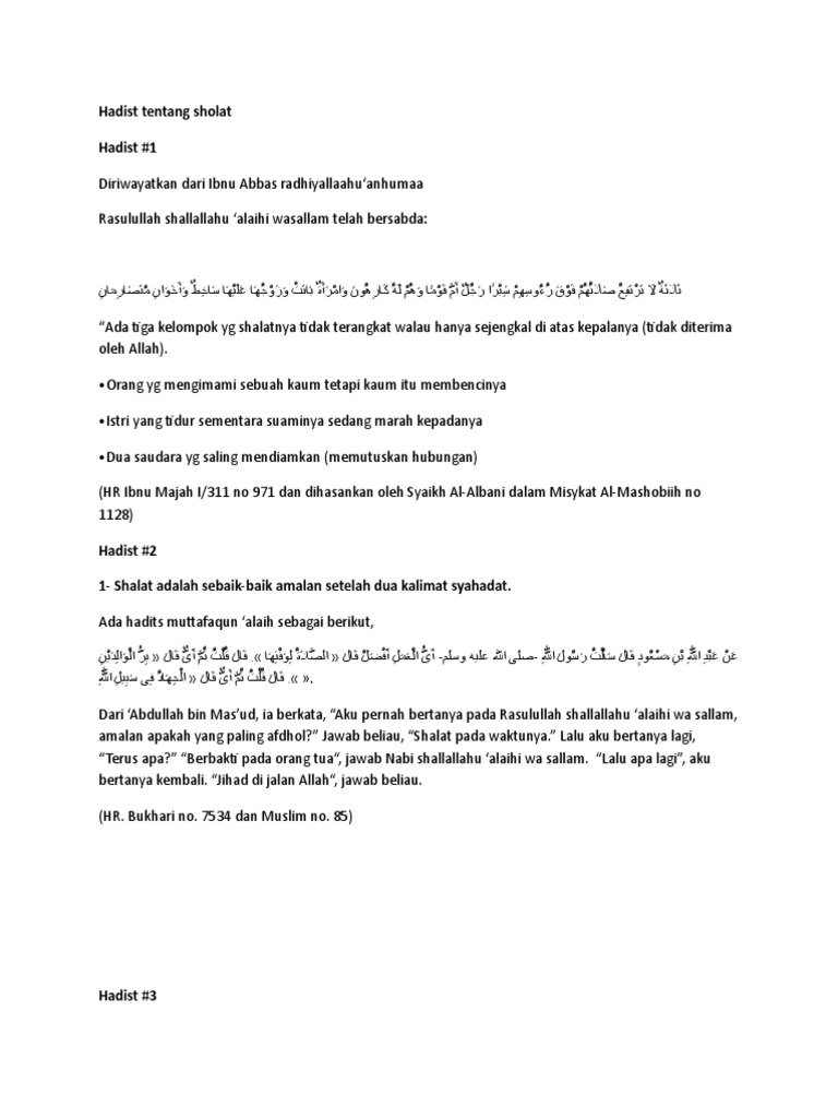 Dapat dari teman FB, " Shalatlah… - Hadits-hadist DOA/dzikir …