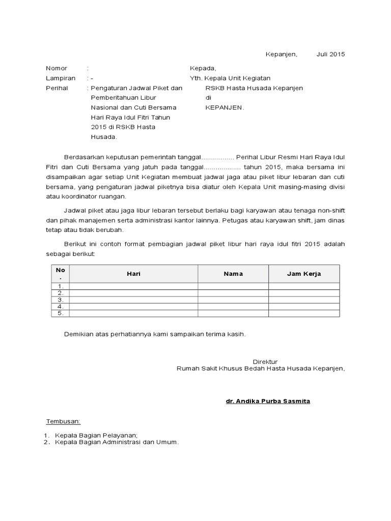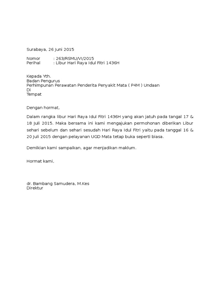 Srt Pengajuan Libur Hari Raya Idul Fitri 2015