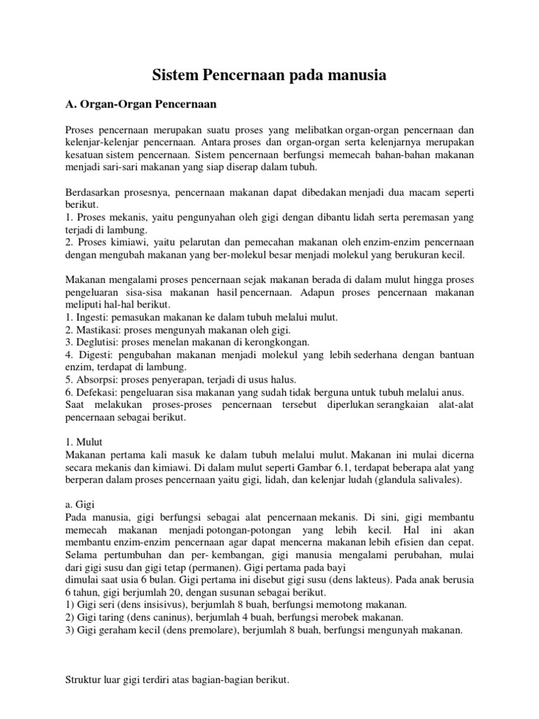 Struktur dan Fungsi Organ Sistem Pencernaan Manusia Pages 1 - 6 …