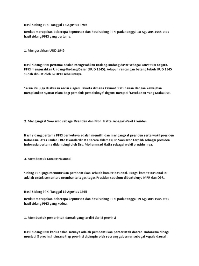 Hasil Sidang PPKI 1 2 Dan 3 Lengkap, Sidang PPKI Tanggal 18 19 Dan …