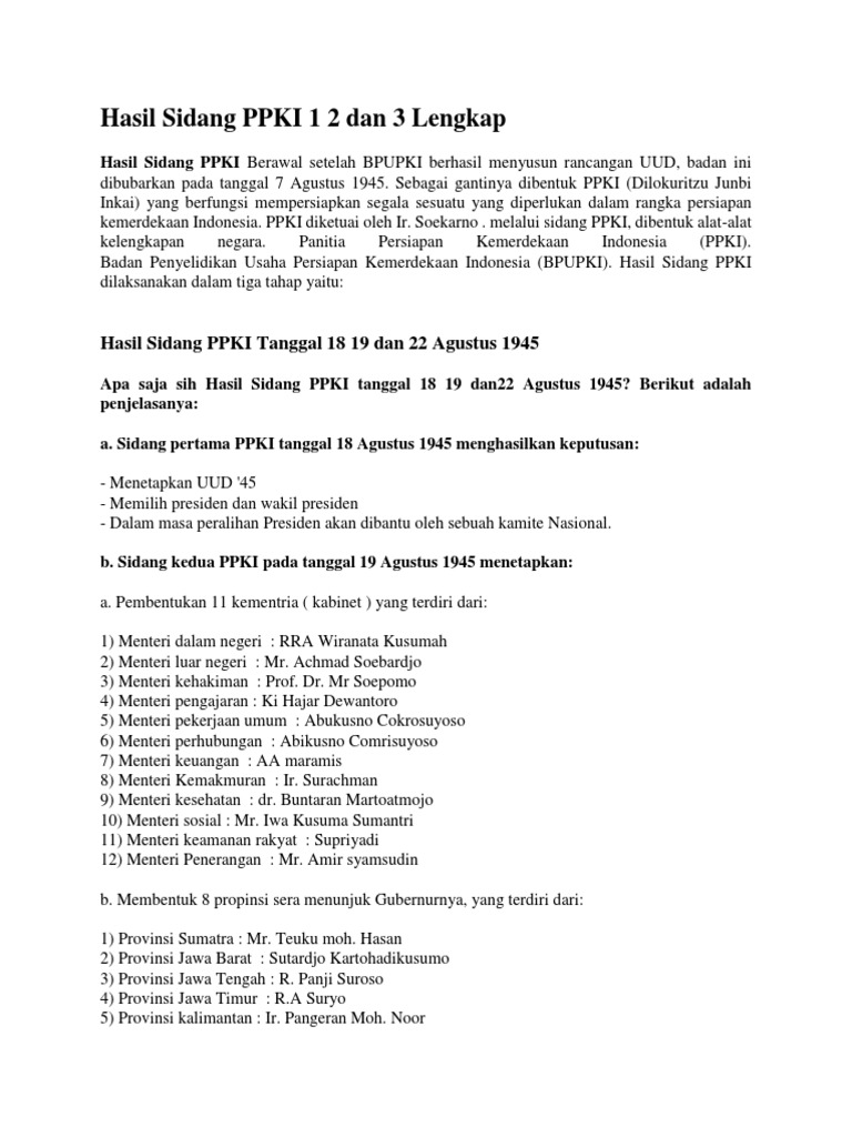 Hasil Sidang PPKI 1 2 dan 3 Lengkap