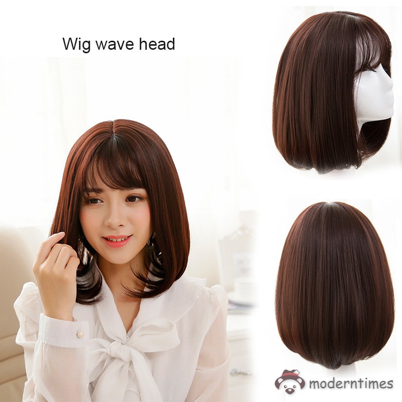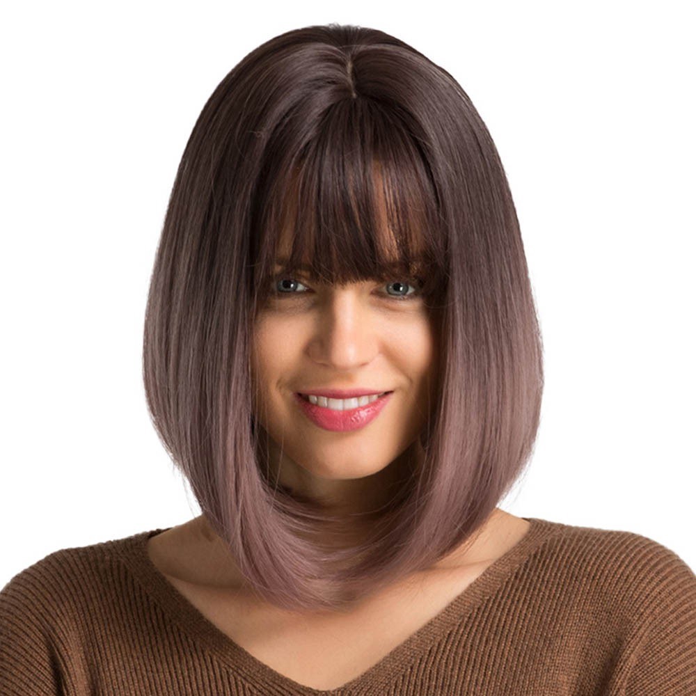 Wig Rambut Sintetis Model Bob Pendek Lurus Dengan Poni Highlight Tahan Panas Untuk Wanita | Shopee Indonesia